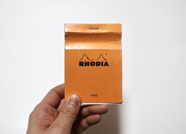 こちらはガジェットではないですが、ロディアのコンパクトなメモ帳をポーチの中に入れて持ち歩いています。Todoをメモしたり、切り取ることができるので伝言用に使ったりと、使いやすいメモ帳。