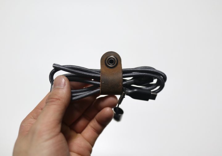 このAnkerのケーブルに、(使っているiPhoneがまだタイプC未対応なので)Lightningケーブルと変換できるストラップタイプのアダプタをつけています。ケーブル1本で充電できるようになるのでとても便利。
