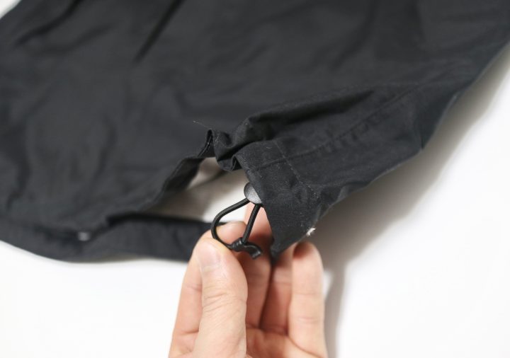 スカンザライトジャケットのいいところは、袖周りや裾周りを紐などで締めることができること。うまく調節することで、自分の着たいデザインで着ることができます。