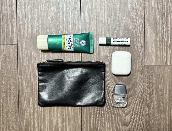ガジェットなどの仕事道具や目薬などのちょっとした物まで、メンズでも持っていると何かと便利なポーチ。