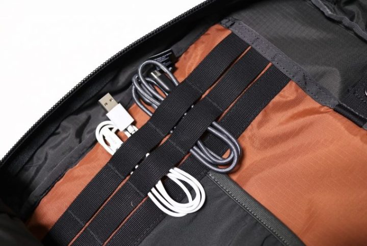 メインの収納部分は、このように全体を開けることでき、状況に応じて物が取り出しやすい仕様。また、収納ポケットも散りばめられているので、ガジェットなどの小物も持ち歩きやすい。